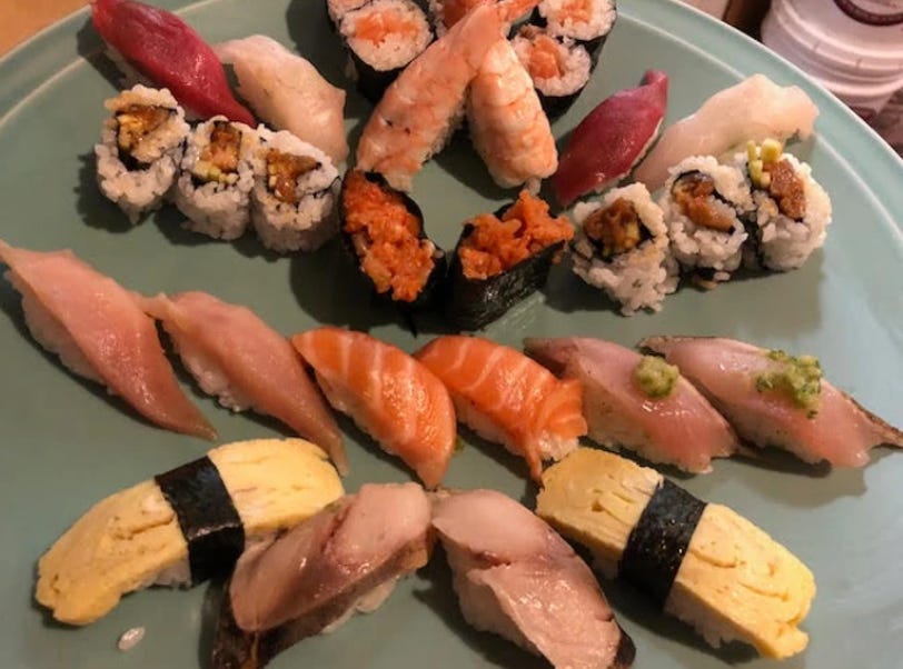 Not all sushi is transcendent! Supermarket type sushi is fine, but nothing special. About once a month I treat myself to what I call “The Good Sushi” at a local place, but it isn’t transcendent. Another place in town serves what I call “The Excellent Sushi.” I am lucky enough to live in a town where I can get even “The Transcendent Sushi”—on rare occasions, of course, because it’s expensive! On truly exceptional occasions (once every few years) I make a pilgrimage for the most sublime sushi I’ve ever had.